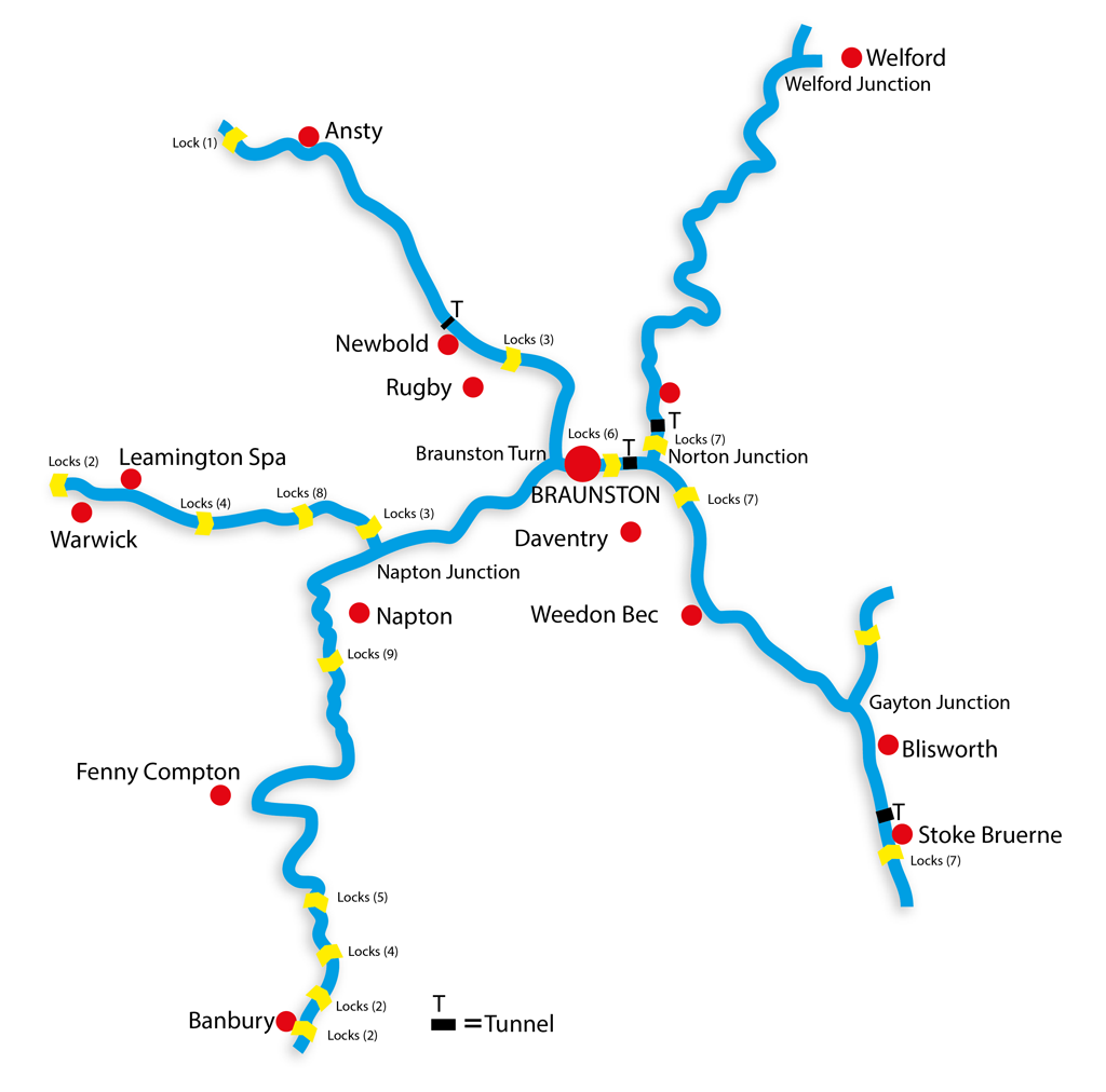 The route from Braunston to Warwick will keep you busy with its locks. Heading to the top of Stockton Locks for the first night, will see you through 3 locks at Calcutt then moor near The Boat pub. The next morning requires team work and a bit of organisation to start descending the locks to Leamington Spa. Some find it hard to get past Long Itchington with its numerous pubs (7!) They are all double locks so sharing the lock work with another boat is a great way to socialise with other boaters whilst admiring the Warwickshire countryside. Leamington Spa has a lot to offer the boater, mooring around bridge ‘41’ gives good access to the town. Why not stroll around Jefferson Gardens, visit the Pump House Museum, browse around the shops, find small boutiques selling unusual clothes and trinkets. The swimming pool is always great to wear the children out if the locks haven’t done that already. Half a mile further along the canal is a big shopping complex with supermarket, bowling alley and food outlets. Turning can be at Bridge ‘38’, ‘43’, at The Cape (2 Locks) or at the foot of Hatton Locks.