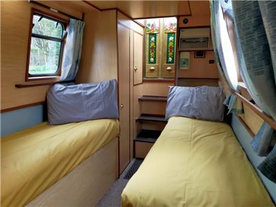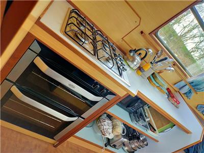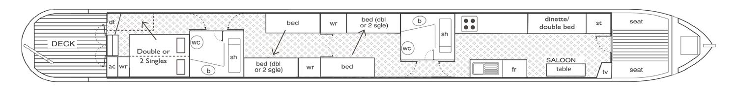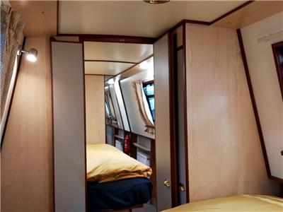 Hemplow is NEW for 2023 she is a lovely well-designed boat thoughtfully fitted out with a stunning modern interior and flexible layout, making her well suited to families, small groups and couples alike. Hemplow has a beautiful large front deck that welcomes lounging, relaxing, reading a book and bringing out the free-standing table for alfresco dining. There are 3 cabins, each can be either one double or 2 single fixed beds with privacy to one of the 2 bathrooms at night. A well-stocked galley including a microwave, full size cooker and fridge with ice box. Hemplow has a cruiser rear deck making access easier for limited mobility, creating an overall large outdoor space ideal.