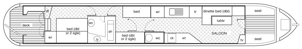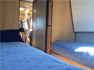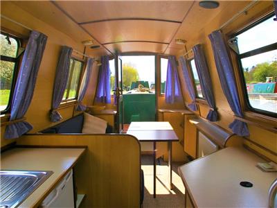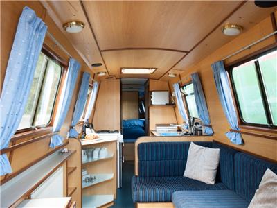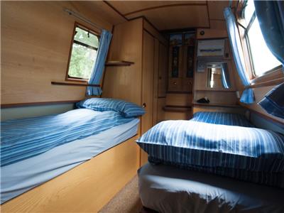 Laughton is a gorgeous ash finished boat that sleeps 4-6, she has a semi-traditional stern, central heating and a light open interior thanks to the galley opening skylight. Laughton is a perfect family get away, with a flexible layout providing a cool, clean and bright atmosphere, with either a single or double bed in each cabin. In the well stocked galley there is a microwave, fridge with ice box as well as an oven and grill. The boat is designed with privacy between cabins and toilets for night time use. Fitted with a television / dvd in the spacious saloon and a large front deck, Laughton is superb for sitting back and relaxing whilst absorbing the stunning views that British canals have to offer.