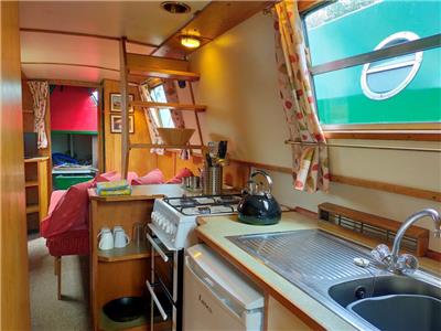 Wrekin is a lovely comfortable boat fitted out with a traditional feel, perfect for couples, but with room for up to three people. Wrekin has a traditional back deck but with a hatchway giving space for two people to steer. It is one of only three of our boats with a covered front deck extending the living area so fresh air is accessible come rain or shine. The open plan saloon is laced with traditional canal decoration; combined with the solid stove, you are in for a relaxed experience, perfect for an escape from the hustle and bustle of life. Additionally, in the well-equipped galley, you will find an electric under counter fridge with ice box, an oven and hob, saucepans, cooking utensils, crockery and cutlery etc. giving you the choice to cook or not. Wrekin has the extra advantage of stables doors at the front giving you the option to open the top for ventilation, or keeping pets and younger ones inside.